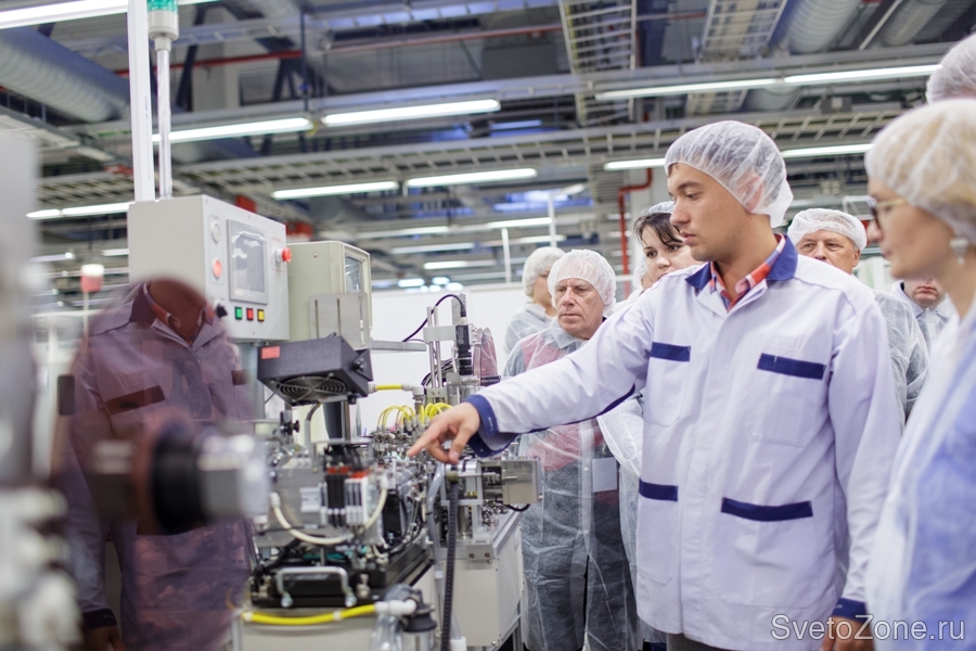 Другая разработка завода – светильник-трансформер серии Prom. Модульная конструкция может быть длиной от 20см до 3м. Имеется взрывозащищенное исполнение корпуса, что позволяет использовать его на объектах Росатома и компании Лукойл. Как опция предлагается покрытие светящей поверхности матовой пленкой для рассеянного света. Комплектация светильника соответствующими светодиодами позволяет использовать его в тепличных хозяйствах, что уже подтвердило увеличение урожайности на 15%. Блок питания светильника имеет защиту от перепадов напряжения, перегрева, импульса до 1000В, короткого замыкания.
