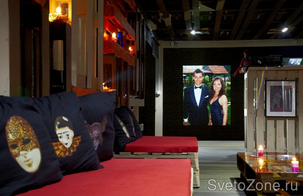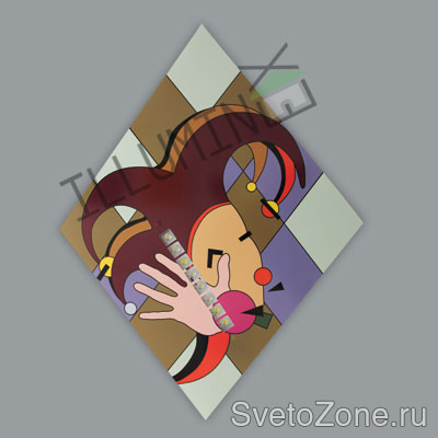 По задумке дизайнера нужны были яркие декоративные потолочные светильники, которые поддерживали бы общую тему интерьера "Карнавал-Арлекин". ООО Иллюминекс изготовил индивидуальные светильники на основе своего потолочного светильника ССП-01.