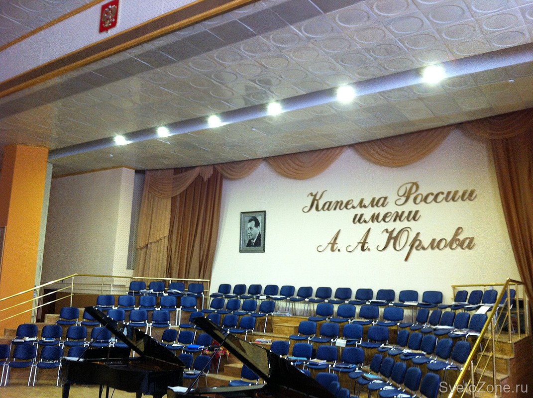 Компания "Аксиома Света" (официальный дистрибьютор компании "Фокус") реализовала проект по модернизации освещения здания хоровой Капеллы. Государственная академическая хоровая капелла России имени А. А. Юрлова — один из старейших отечественных хоровых коллективов.