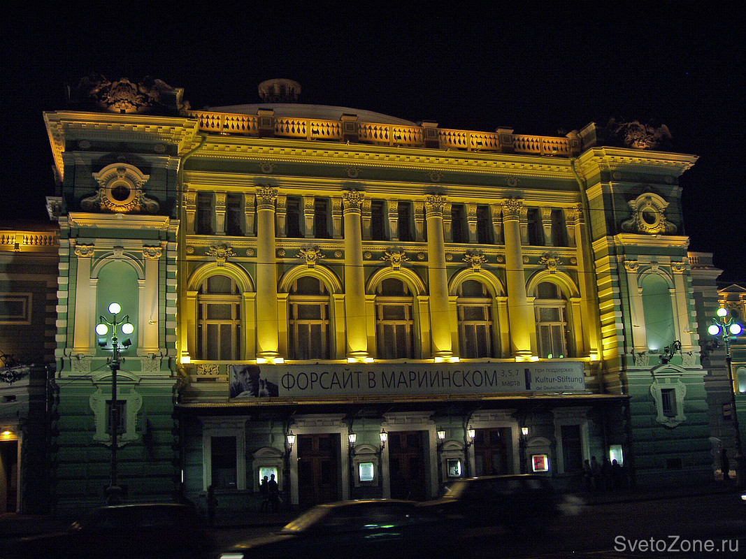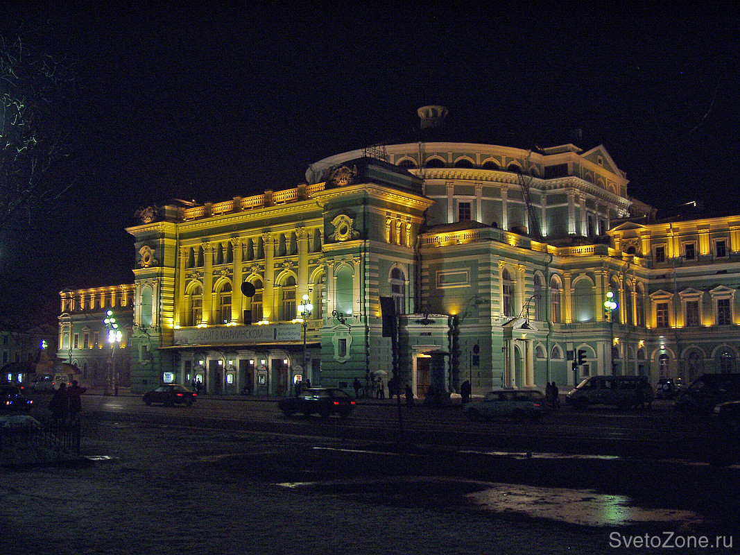 Архитектурная подсветка фасада Мариинского театра.