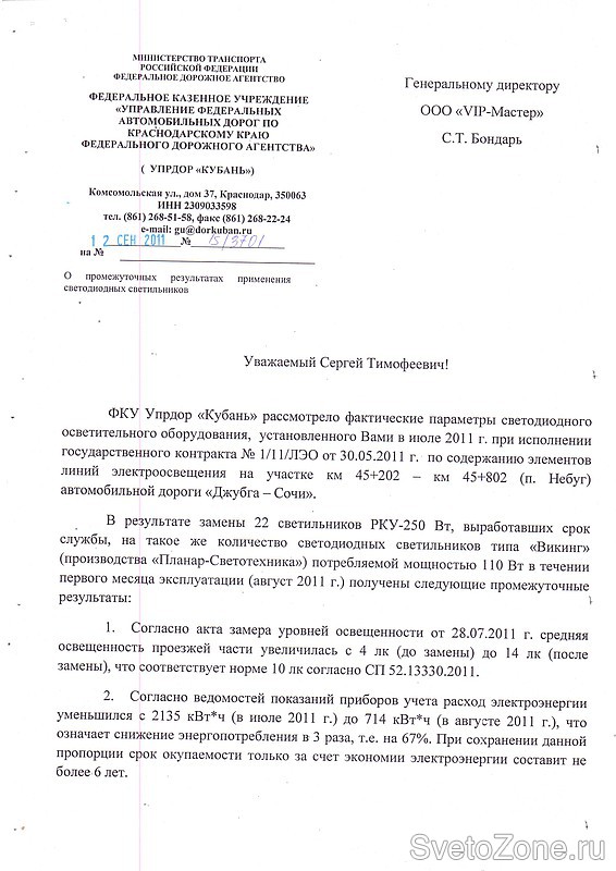 Проект выполнен с использованием светодиодных светильников собственного производства (ООО "Планар-Светотехника").
