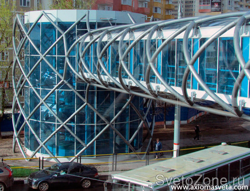 В г. Химки (Московская область) появился новый надземный пешеходный переход, связывающий одновременно четыре части перекрестка. Надземный пешеходный переход в виде креста расположен на пересечении Юбилейного проспекта и улицы 9 Мая. Переход выполняет не только практическую функцию, но и является украшением микрорайона. На каждой из четырех сторон пешеходной части улицы возведены башенки, которые оборудованы лестницами и морозостойкими лифтами.