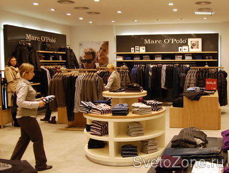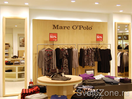Доминирующими цветами в коллекции одежды Marc O Polo являются естественные тона: белый, различные оттенки коричневого и синего. Они же определяют дизайн и цветовую гамму интерьера всех магазинов сети и легли в основу построения световой дизайна торгового зала. |