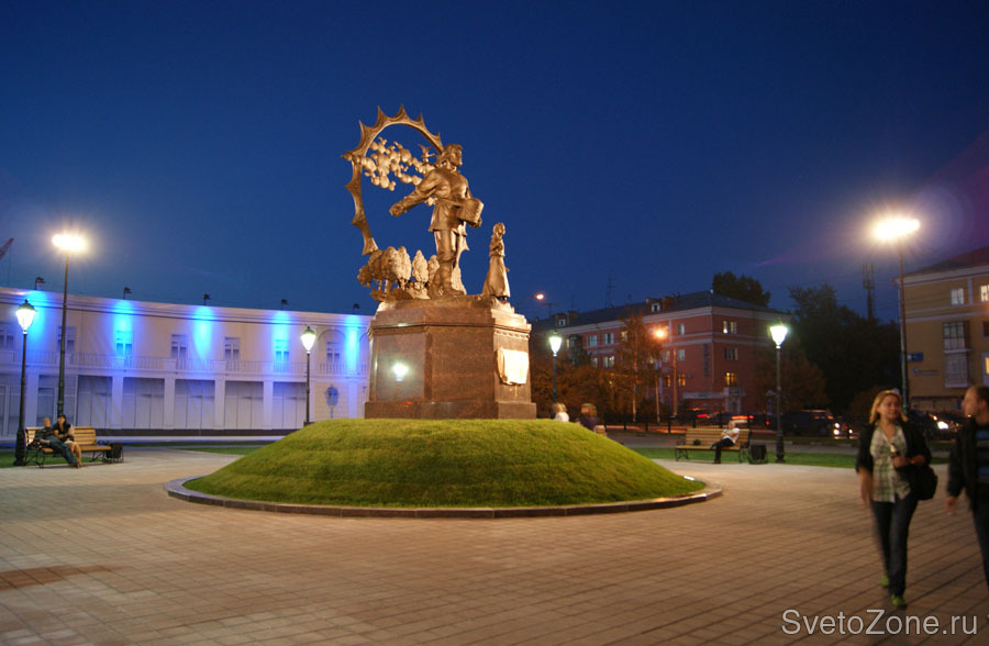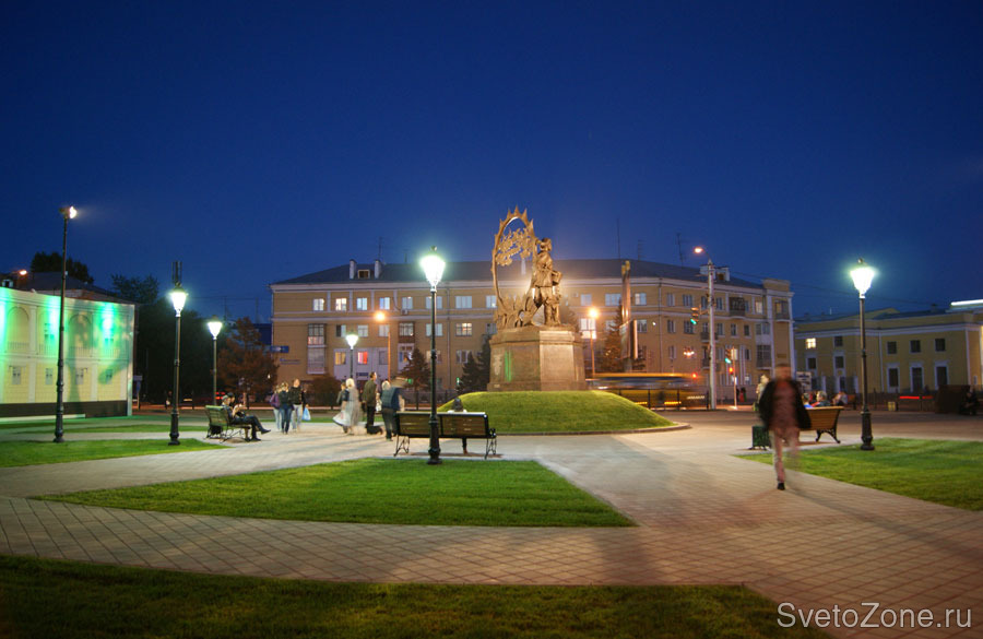 Для подсветки памятника используются 4 прожектора Focal с преломляющими стеклами мощностью 150 Вт. Для освещения прилегающей территории применяются 3 прожектора Neos 1 мощностью 70 Вт. |
