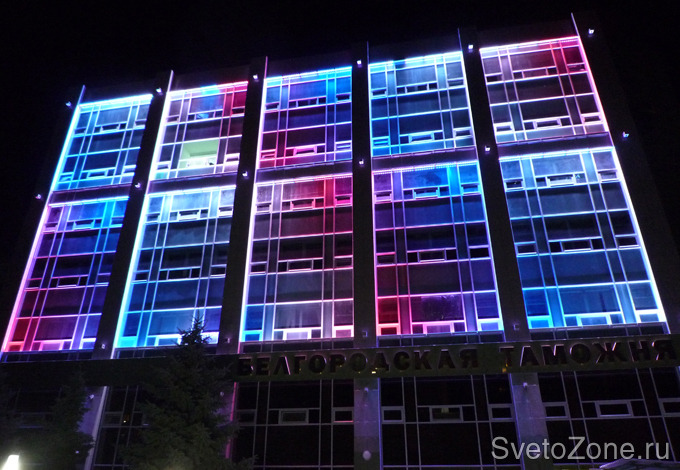 В мае 2012 года осуществлена архитектурная подсветка здания таможни в г. Белгород. Для подсветки использовано более 100 светодиодных светильников серии IntiLINE. Прожекторы серии IntiLINE используются и для акцентного, и для заливающего освещения. Световой поток конкретной модели определяется его длиной и количеством используемых светодиодов. В данном проекте использованы метровые RGB светильники IntiLINE со световым потоком до 1600 лм.