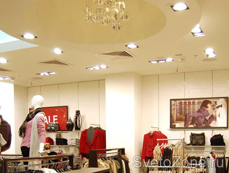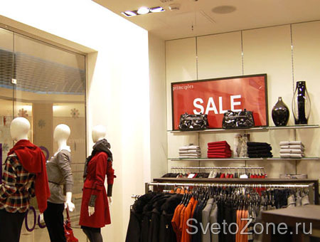 Наша компания осуществила разработку светодизайна для магазинов PRINCIPLES. Яркий и при этом комфортный уровень освещения в торговом зале достигается за счет применения встраиваемых светильников, выполненных в форме квадратов, которые гармонично вписываются в общую концепцию магазина.