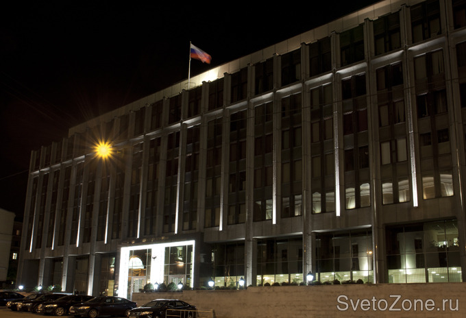 В сентябре 2012 года осуществлена архитектурная подсветка здания Совета Федерации. В проекте использованы светодиодные прожекторы серии IntiRAY, а также грунтовые светильники IntiGROUND-midi производства компании "IntiLED". Прожекторы серии IntiRAY расположены на фасаде и подсвечивают вертикальные архитектурные элементы здания снизу-вверх, а светильники IntiGROUND-midi освещают здание с грунта. Благодаря использованию узкой оптики во всех светильниках удалось аккуратно подсветить тонкие вертикальные ребра на здании, избежав паразитной засветки.