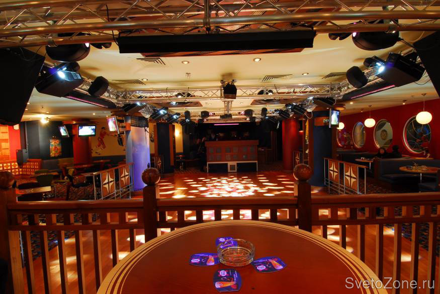 Высота потолков наложила определенные ограничения на использование световых приборов, поэтому было решено отказаться от вращающихся голов в пользу сканеров и роллеров. Серия сканеров Genius NextScan с лампой мощностью 150 Вт отлично вписалась в центральные пролеты фермы, а мощные роллеры Super Quark Roller с лампой 250 Вт удачно расположились по периметру. Шесть ультрафиолетовых светильников длиной 120 см RIBALTA 40 от Genius создают дополнительные эффекты. |