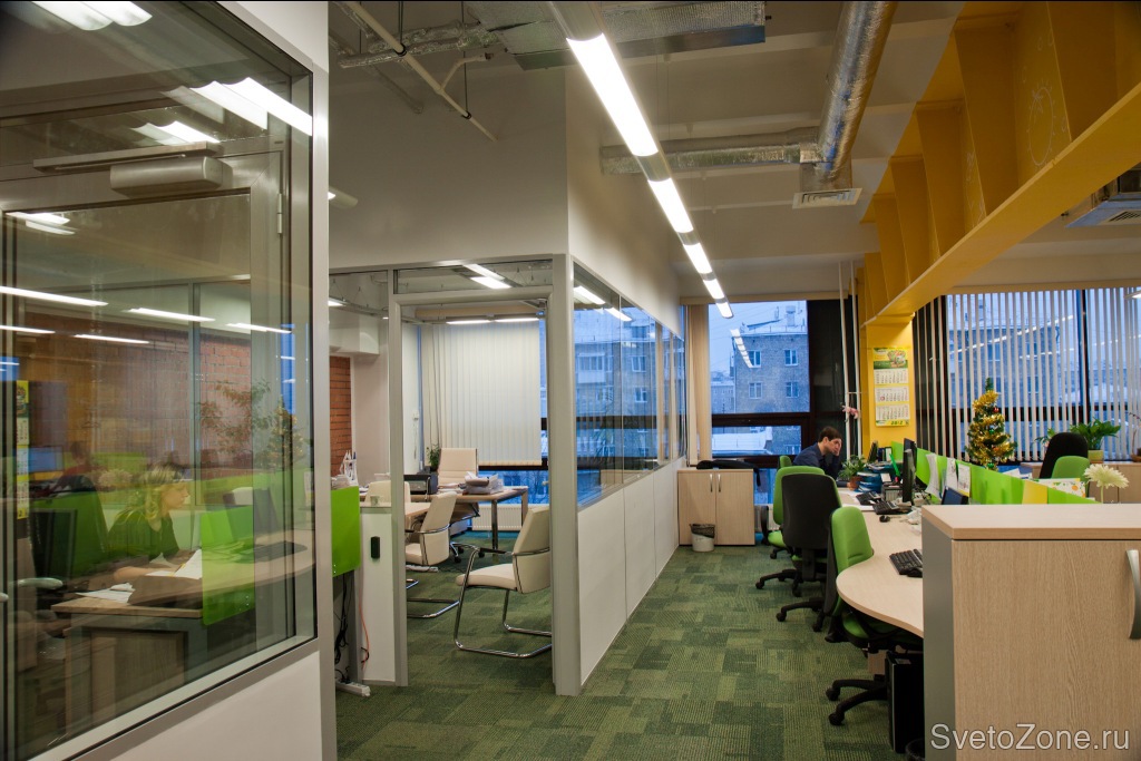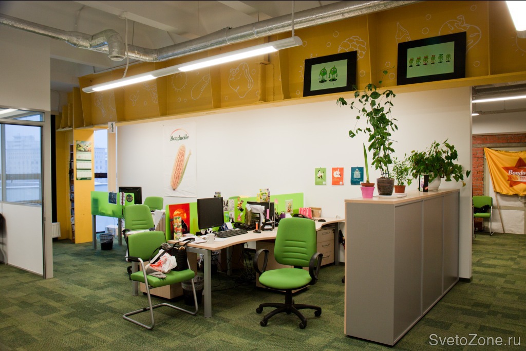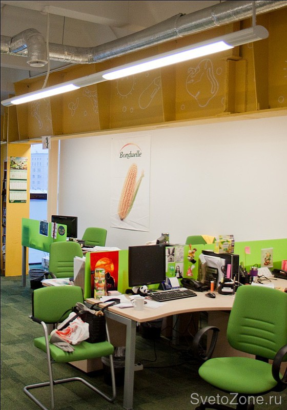 Создать легкое настроение и зарядить энергией работников офиса российского отделения группы«Bonduelle» в Москве помогает освещение. Просторный современный open space и представительские зоны освещаются с помощью подвесных люминесцентных светильников BS (Halla) и систем AIXLIGHT PENDANT SYSTEM (Marbel). Использование подвесных и встраиваемых светильников позволяет добиваться оптимального сочетания отраженного и заливающего света, обеспечивающего необходимый баланс и комфортную световую атмосферу. |
