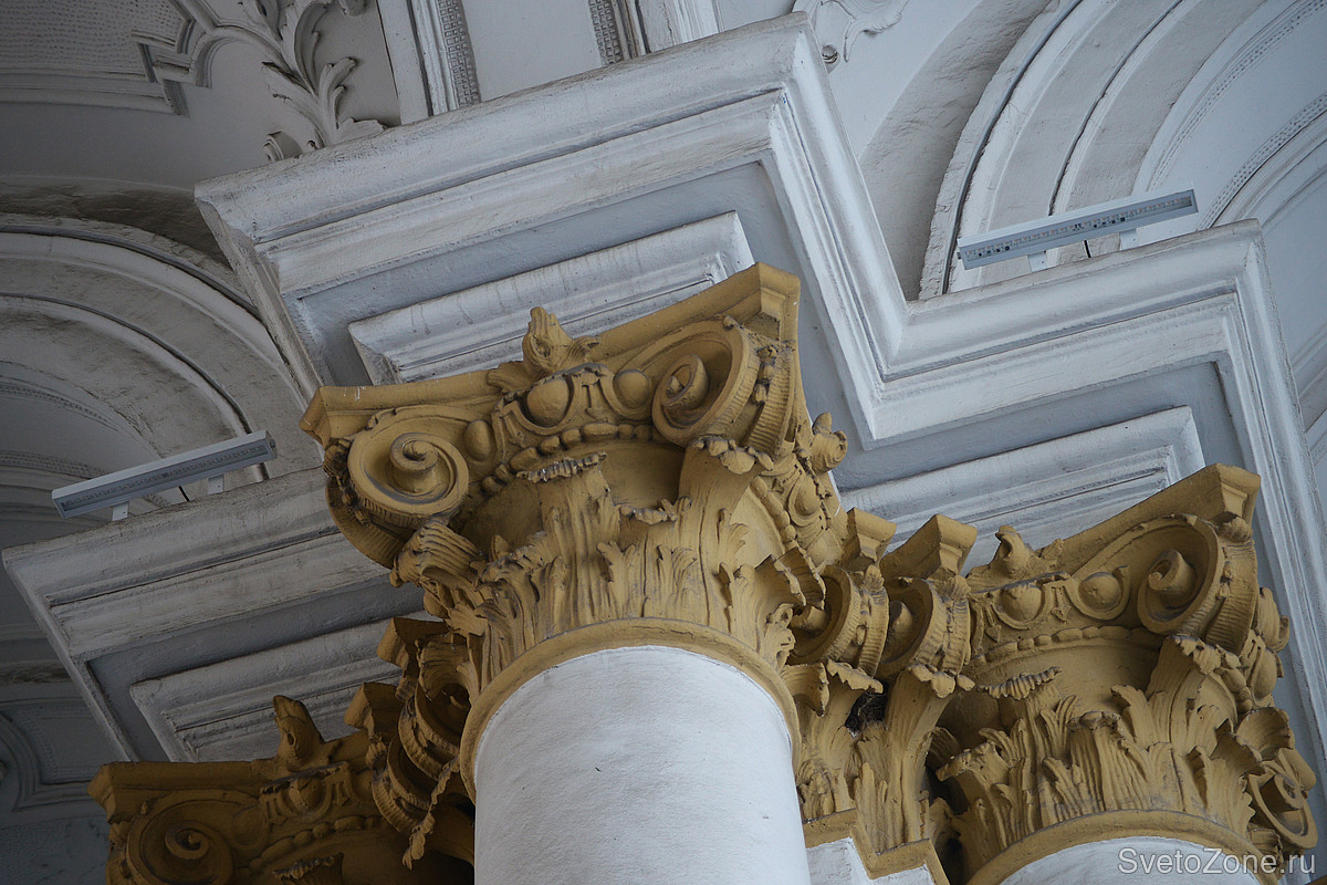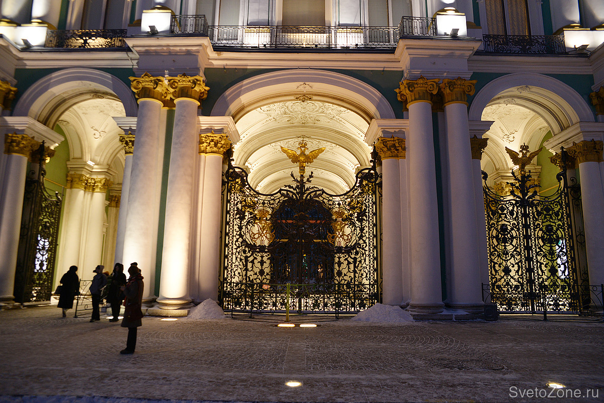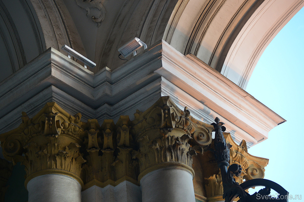 Использованы архитектурные светодиодные светильники «Оптолюкс-Декор-Плюс-48-WW», «Оптолюкс-Декор-Плюс-24-WW», «Оптолюкс-Декор-Плюс-12-WW» и «Оптолюкс-Декор-Лайт-24-WW» производства ООО «Планар-Светотехника».