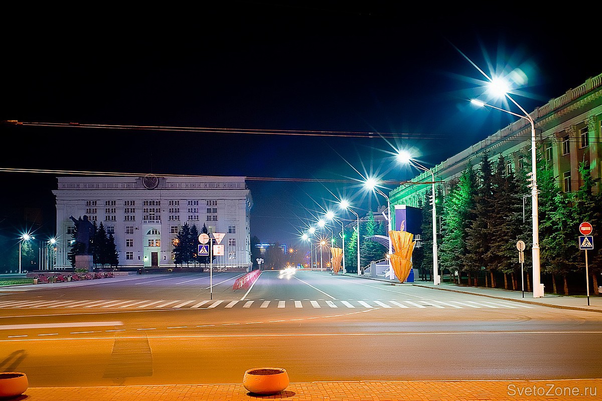 В данном проекте освещения, реализованном компанией ФОКУС использовались светильники типа УСС, зарекомендовавшие себя как эффективный аналог светильников типа ДнАТ и ДРЛ. К примеру, светильник УСС 70 потребляет всего 75 Вт по сравнению с аналогом ДРЛ-250, который потребляет 300 Вт при меньшем световом потоке. Достигнута значительная экономия и высокая визуальная эффективность - город стал ярче и привлекательнее |
