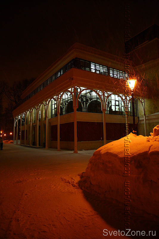 Световые Технологии осуществляло комплексную поставку оборудования на проект. При выполнении рабочего проектирования специалисты компании тщательным образом проработали светотехнические решения для зрительного зала и вестибюлей, а также для реализации проекта разработана новая модель светильников в виде БРА (FROST) c блоками аварийного питания, что для настенного светильника с энергосберегающими лампами редкость, применены светильники направленного света. Также ряд решений в духе театральных традиций воплотился в освещении прилегающих территорий и фасада. |