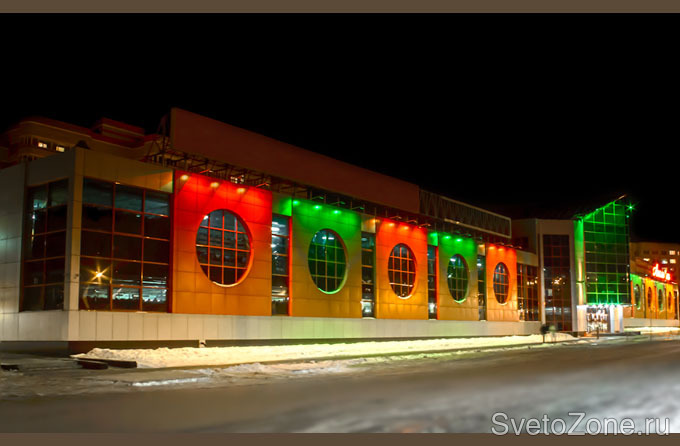 Используемое оборудование: светодиодные RGB прожекторы серии IntiRAY производства "IntiLED", а также установлена система управления освещением на базе ПК.