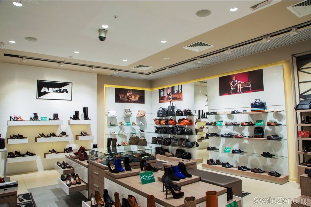 Проект освещения фирменных магазинов итальянской обуви и аксессуаров ALBA, ориентированных на ярких и стильных женщин, базируется на использовании металлогалогенных светильников БОСМА GIMO и ANI spot на шинопроводе. Сочетание оборудования различной мощности позволило обеспечить эффектную акцентную подсветку при высоком уровне фонового света. Стильный штрих – светодиодная закарнизная подсветка стен и потолка.