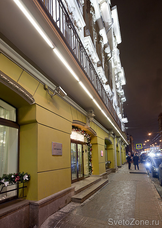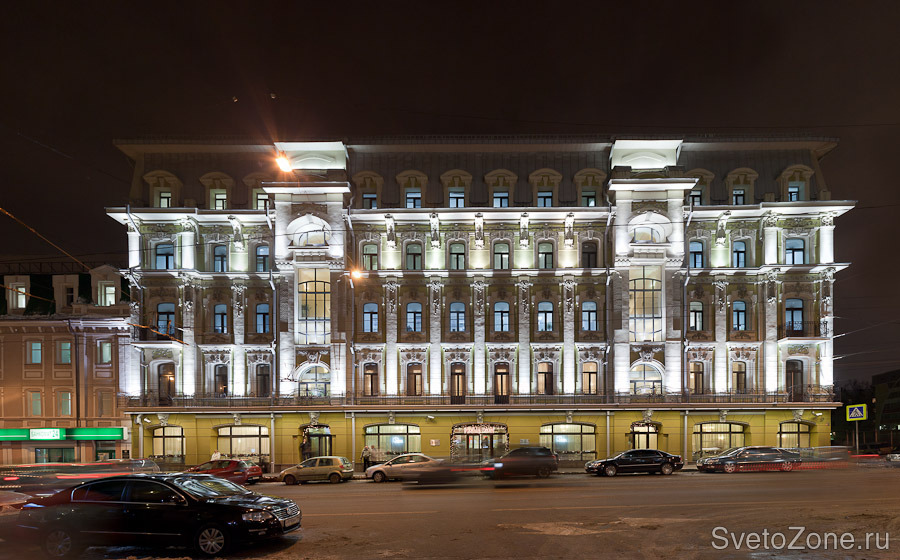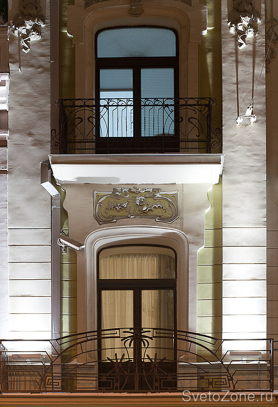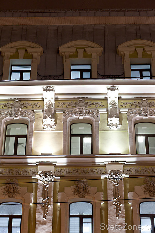 Архитектурно-художественная подсветка главного фасада здания бывшего доходного дома О.О.Вильнера, 1903 г., архитектора Н.И.Жерихова, расположенного по адресу: г. Москва, ул. Старая Басманная, д.12, стр. 1 была выполнена силами специалистов московского офиса "Светосилы". Сейчас в данном здании расположен центральный офис ОАО «Первая грузовая компания». Фасад здания был отреставрирован в 2009-2010 гг. согласно историческим чертежам. Сложный архитектурный декор определил решения, которые были использованы в данном проекте. |