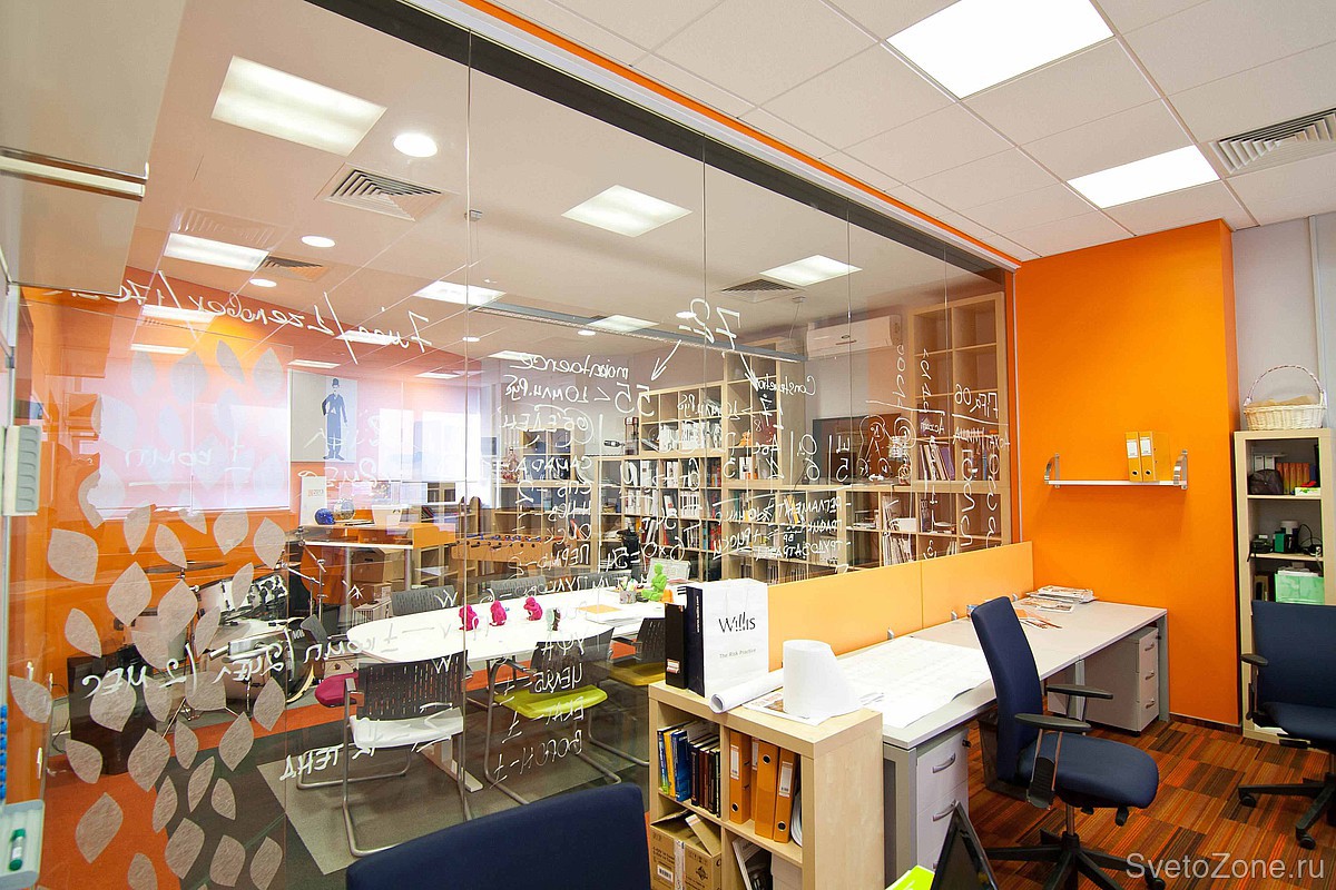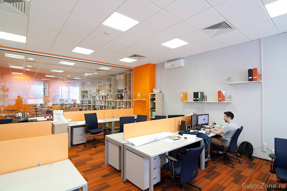 В проекте использовалось светотехническое оборудование европейских фабрик: в рабочих зонах ZUMTOBEL L-fields, в общественных зонах RZB Economy DL, ZUMTOBEL Claris II, PROLICHT. |