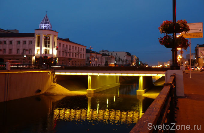 Используемое оборудование: более 230 светодиодных светильников производства "IntiLED". Метровые прожекторы IntiLINE освещают нижние части переходов через протоку, дополняя праздничную панораму исторического центра Казани. Монтаж художественного освещения мостов стал финальным этапом масштабного проекта преображения Булака в рамках подготовки города к Универсиаде-2013.
