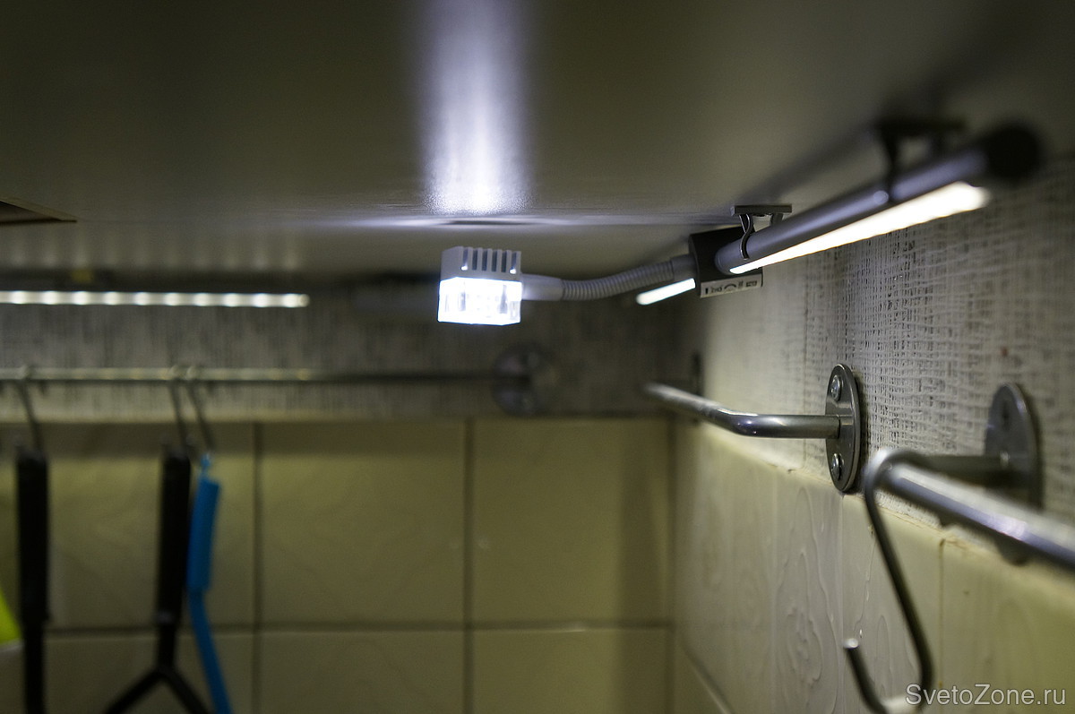 - подсветка верха и низа полки (все вещи в шкафу хорошо видны);