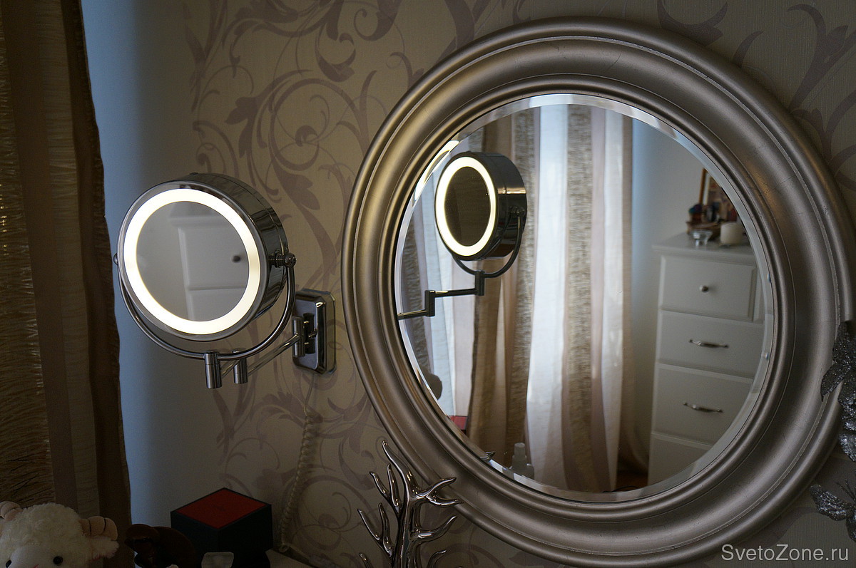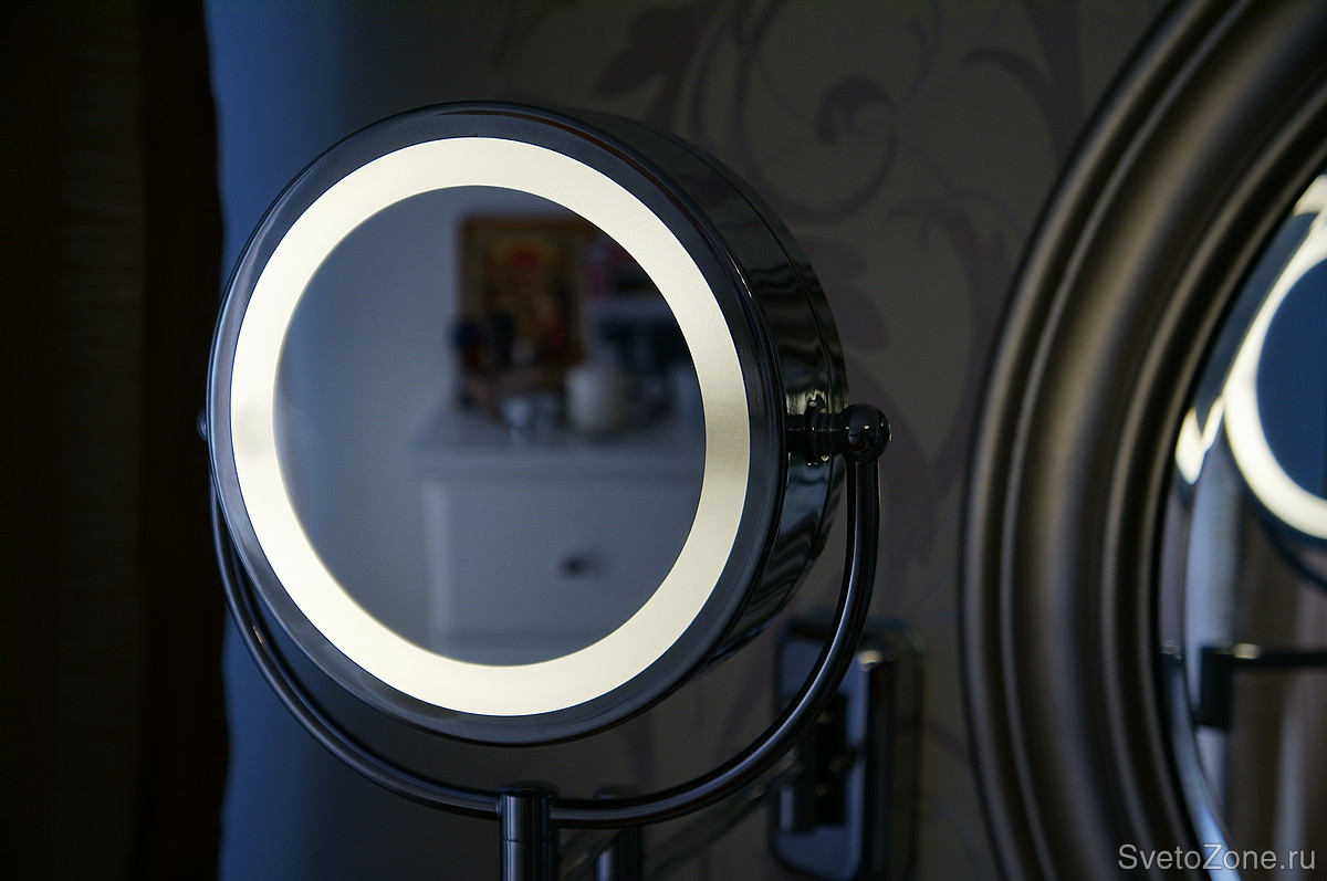 - свет возле зеркала не бьет в глаза, передает идеальную цветопередачу (важно при нанесении макияжа);