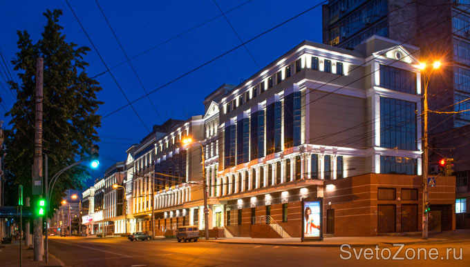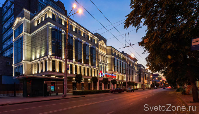 Информация о проекте: "Аксиома" – уникальный по своей функциональности деловой центр. Структура коммерческого здания включает в себя не только офисные помещения различной площади и модификаций с возможностью свободной планировки, но и выставочные площадки, и помещения для пресс-конференций. При разработке концепции проекта архитектурного освещения бизнес-центра основной акцент был сделан на классические формы здания. Дизайнеру удалось создать единую гармоничную световую среду и в то же время подчеркнуть значимость здания в общественной и деловой жизни города. |