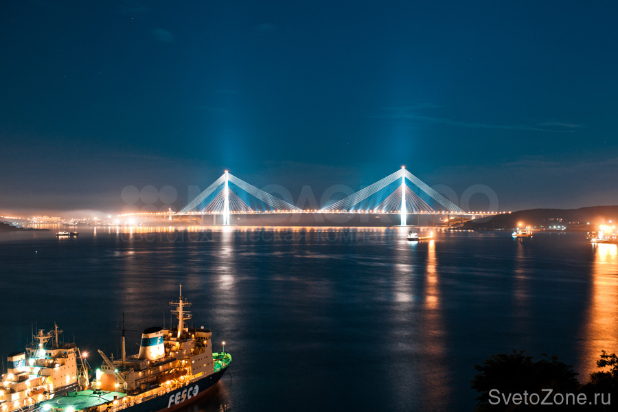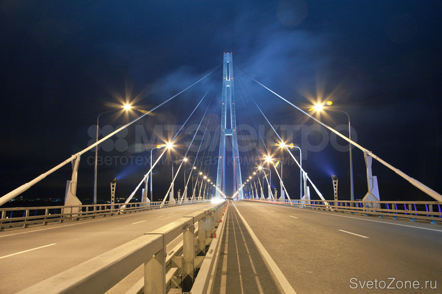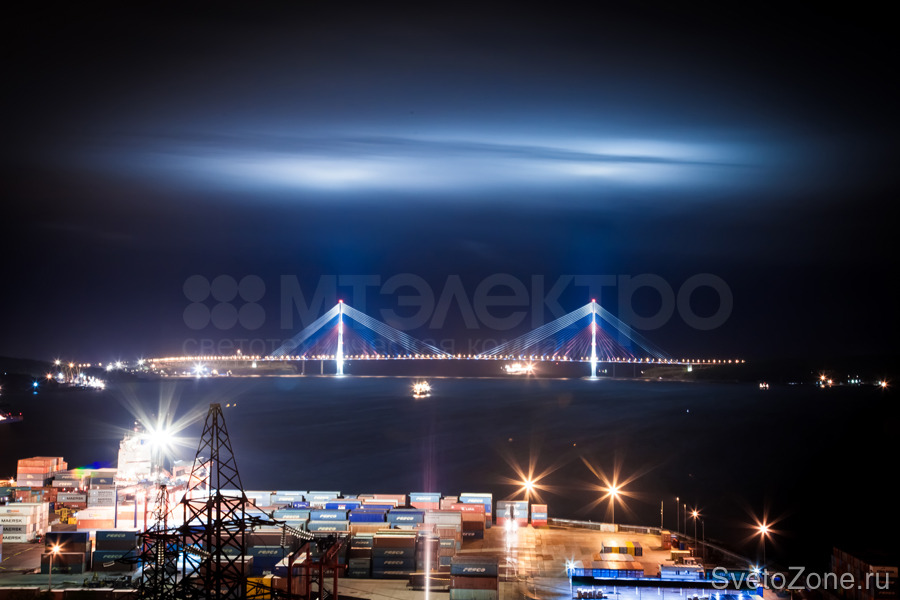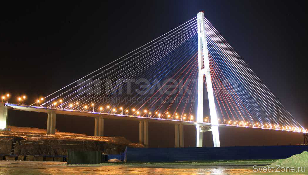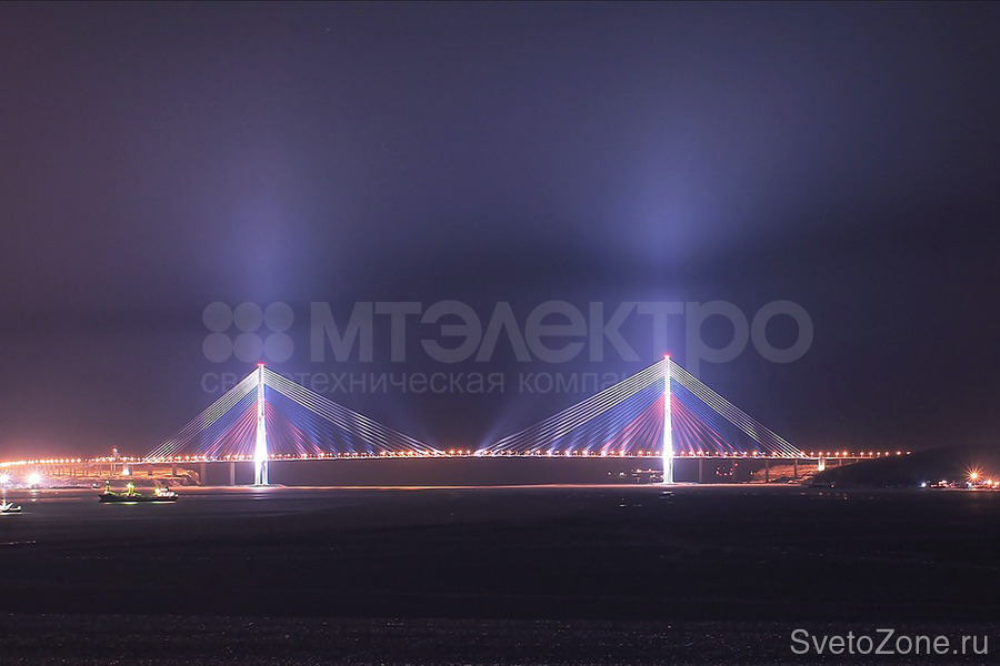 Проектирование и строительство моста предусмотрено программой подготовки к саммиту AТЭС 2012. Генподрядчиком на выполнение строительно-монтажных работ выступило ОАО «УСК МОСТ», проектировщиком - ООО «НПО «Мостовик». Принимая участие в работах по строительству моста, компания СТК «МТ Электро» выполнила полный комплекс работ по электроснабжению и функциональному освещению объекта, а также проектированию и монтажу архитектурно-художественной подсветки.