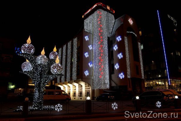 Проект для компании «Лукойл» — один из наиболее эффектных проектов декоративного освещения, украсивший набережную Петербурга. Его по праву считают лучшим празднично-оформленным объектом 2007 года. Несколько дней монтажа, сотни метров string lite, десятки звезд и различных элементов украшения, 6.5 метровое светящееся дерево— все это не только выгодно подчеркнуло архитектурную особенность здания, но и стало символом красоты, принесшем в город новый качественный уровень праздничного освещения. |