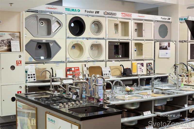 Компания "Luxburg" выполнила проект освещения магазина сантехники. Параметры помещения и расположение экспозиции подразумевали использование трековой системы на подвесах со светодиодными светильниками ТС-Luxburg 25/01. Данная система очень функциональна, так как позволяет изменять направление света и увеличивать количество источников. |