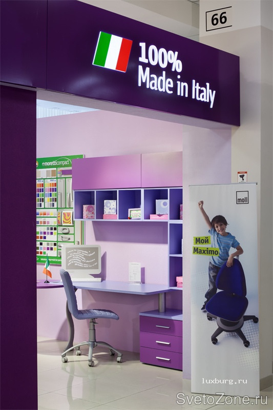 Трековые светодиодные светильники ТС-Luxburg 18/02S зарекомендовали себя с лучшей стороны в торговом освещении, сфере т.н. технического света. В настоящей фотогалерее представлен проект акцентирующего освещения экспозиции и товаров салона итальянской детской мебели. Отличительной особенностью светодиодных светильников является отсутствие ИК-лучей в световом спектре. Таким образом, их можно беспрепятственно применять для освещения товаров, поверхностей и предметов, склонных к выгоранию или боящихся избыточного тепла. |
