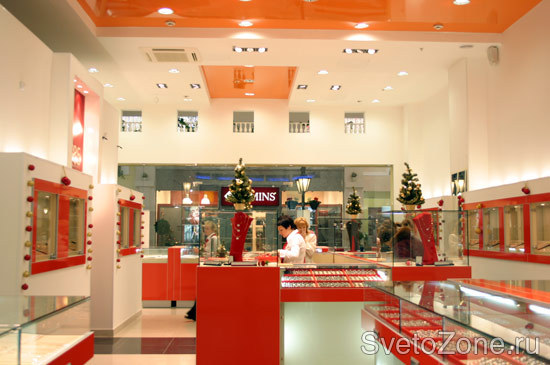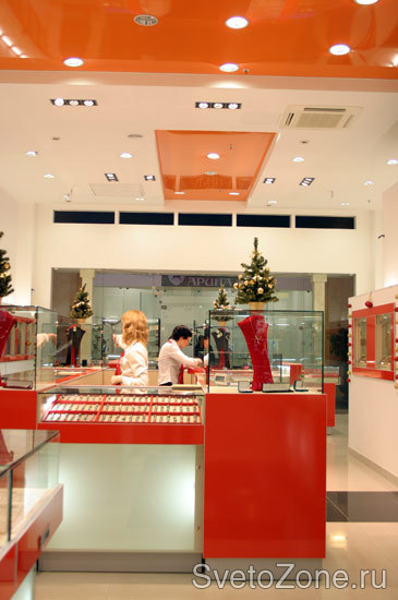 Созданное освещение, помогает эффектно «подавать» ювелирные украшения в витринах. С подобной световой планировкой, в магазине создана комфортная световая среда. Несомненно, прекрасно созданное освещение способствует привлечению новых и уже существующих покупателей. Подобная «музыка» света создает оптимистичное, бодрое настроение у покупателя. |