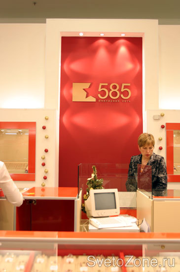 Бренд «585» сеть ювелирных магазинов известна своим отличным сервисом и качественным товаром. Эксклюзивно для данного бренда, две компании – ТЕХНОЛЮКС (производитель светильников) и ТОЧКА ОПОРЫ, общими усилиями создали уточено-притягательный световой облик. Магазин расположен по адресу: Санкт-Петербург, пр. Культуры дом, 1, Торгово-развлекательный комплекс «Родео-Драйв».