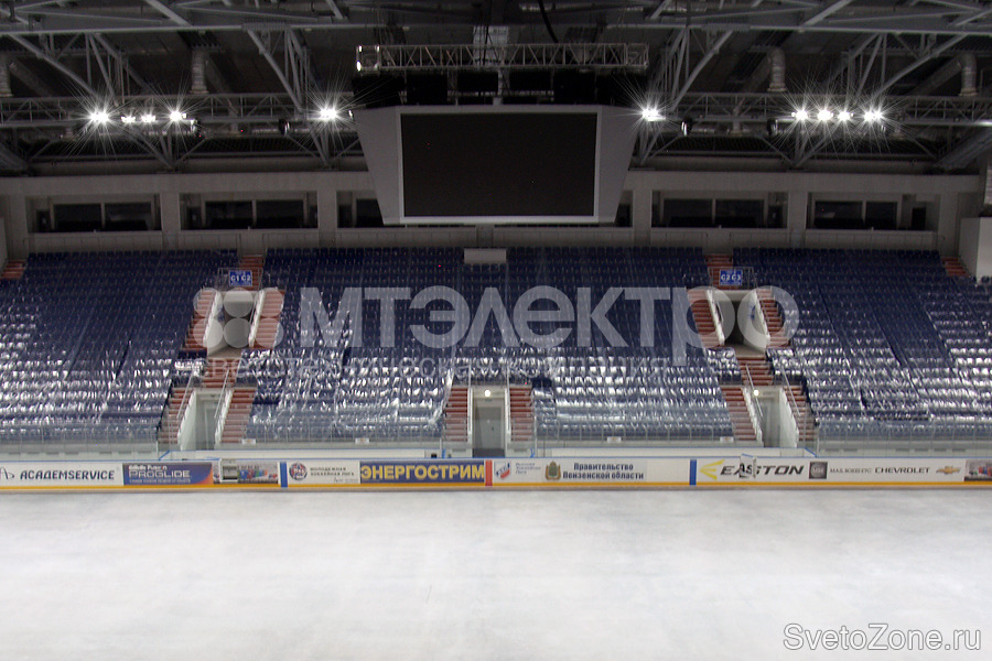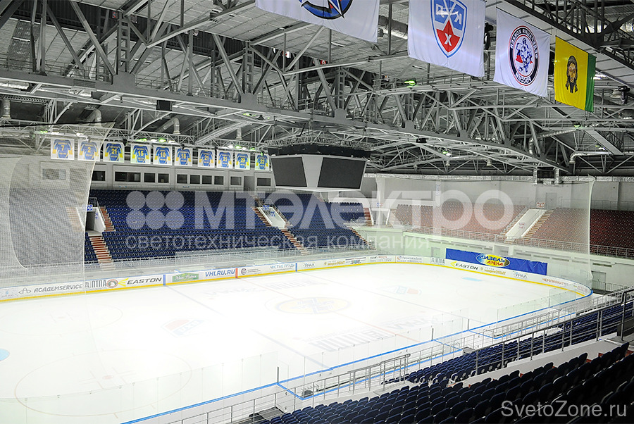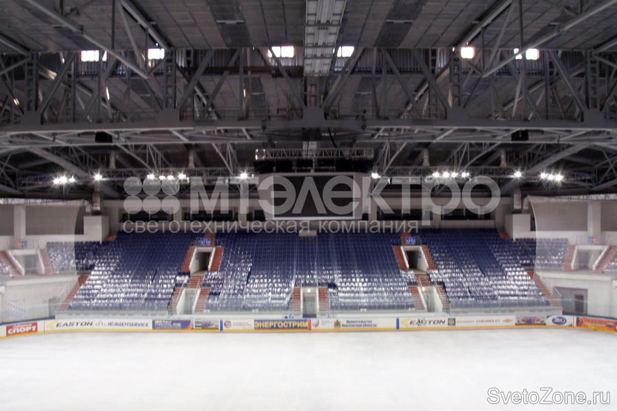 Проект: Совместная разработка светотехнического проекта с Disano Illuminazione (раздел ЭО) по функциональному освещению центральной и тренировочной арен, поставка светотехнического оборудования, юстировка.