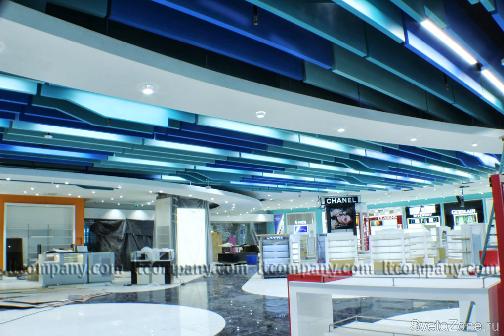 Для оснащения зоны Duty Free Компания «Световые Технологии» поставила светодиодные светильники LED MALL D 100. |