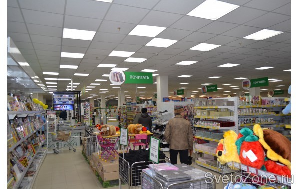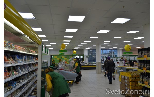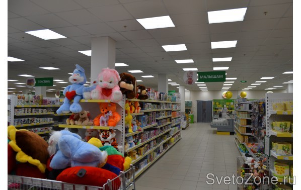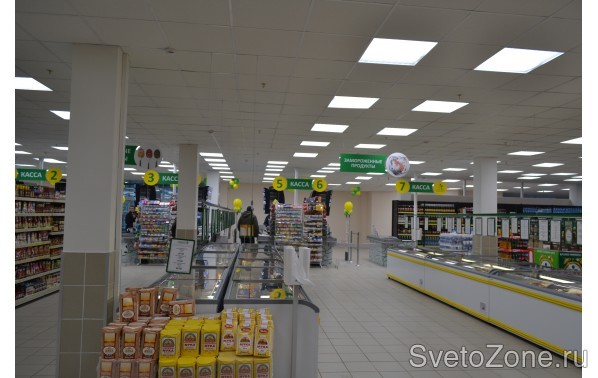 Дилером компании "БаррусГрупп" был успешно реализован проект освещения сетевого супермаркета в г. Соликамск. Для реализации поставленной задачи применялись светодиодные светильники Premium класса серии ДВО01-32, ДВО01-35, ДВО01-62, ДСП02-60, а так некоторые модификации светильников с температурой 3000К. Как видно на снимках люксметра освещенность в торговом зале составила 872 Лк. На территории кухни, где применялись светодиодные промышленные светильники ДСП02-60 - освещенность 475 Лк. Так же была подсвечена и зона разгрузки/погрузки продукции светильниками ДСП02-60.
