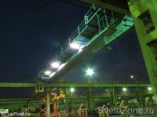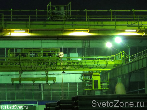 На одном из предприятий Татарстана ведется плановая реконструкция освещения мостовых кранов с декабря 2009 г. Приборы с лампами накаливания мощностью 500 Вт были заменены на уличные светодиодные светильники УСС 70.