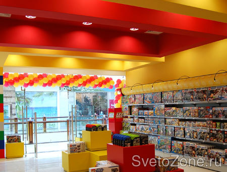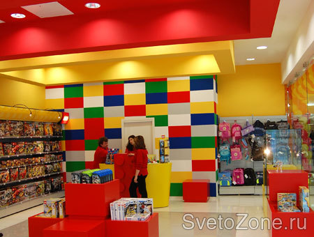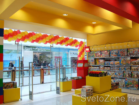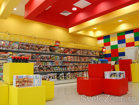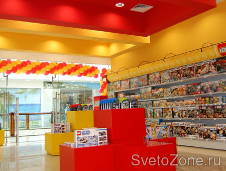 Его то – кирпичик, дизайнеры сделали центральным элементом всех фирменных магазинов Лего. Здесь нет присущей всем магазинам игрушек хаотичности в расположении полок с игрушками.