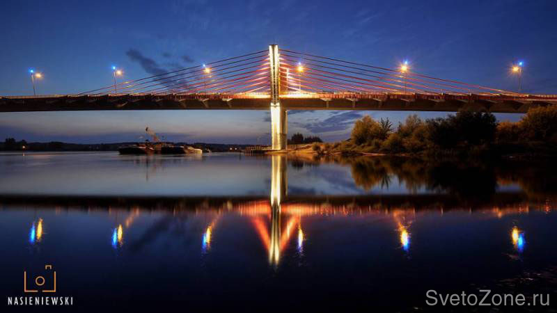 Официально сданный в эксплуатацию летом 2012 г., один из самых длинных мостов в Европе стал наикратчайшим путем в город Квидзын (Kwidzyn), расположенный на севере Польши. Длиной 808.5 метров и шириной 16 метров, новый мост через реку Вислу живописно выделяется в темное время суток за счет своей элегантной архитектуры и реализованной концепции освещения.