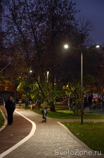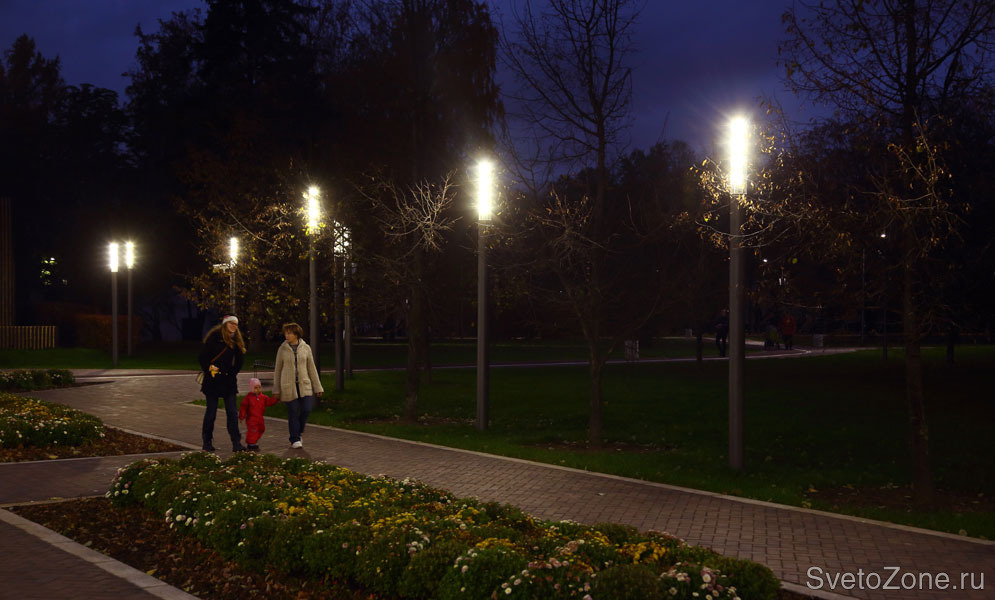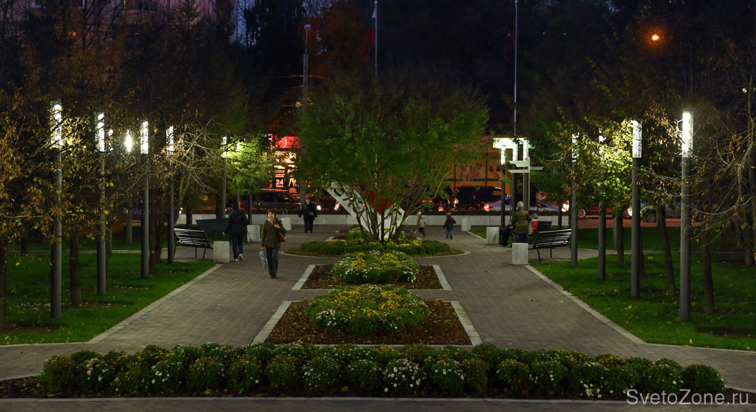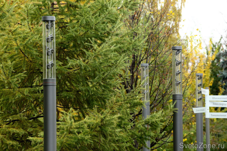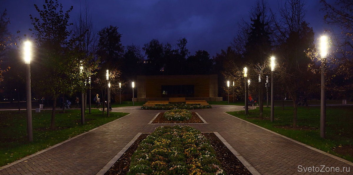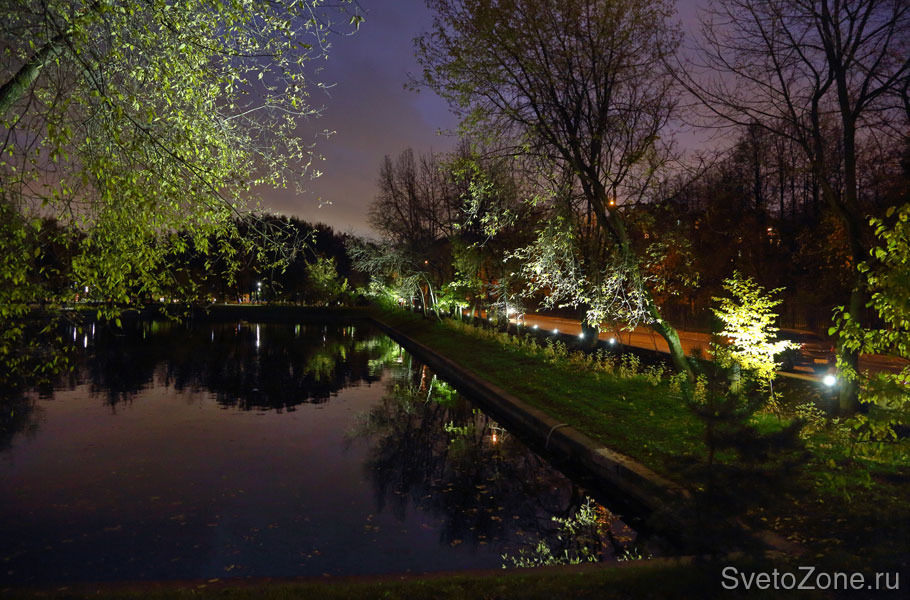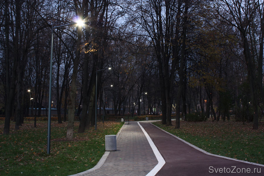 В освещении парка использовалось современное оборудование, в том числе светодиодное: светильники производства компании Eclatec и прожекторы производства «Брайтэлек».