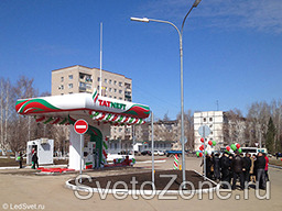 Компания «Фокус Татарстан» в г. Альметьевск обеспечила светодиодным освещением мини-АЗС «Татнефть». Они обладают меньшими площадями, чем традиционные, при этом, отвечают всем современным экологическим, санитарно-гигиеническим и противопожарным требованиям. Новые станции укомплектованы современными топливораздаточными колонками, платежными терминалами и энергоэффективным светодиодным освещением.