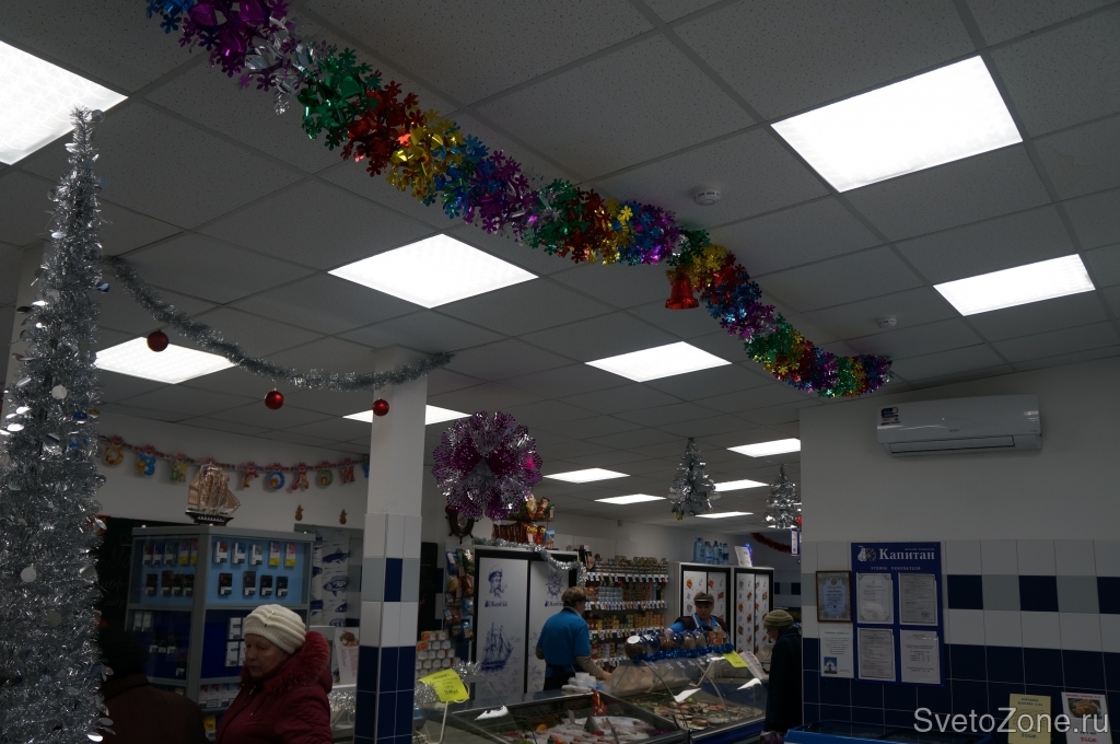 Дилером компании "БаррусГрупп" продолжается постепенная модернизация площадей одной из торговых сетей. Торговая сеть специализируется в основном на рыбной продукции и, как и в любом другом розничном бизнесе, освещение торговой площади имеет прямое влияние и на посетителей и на качественное представление продукции на прилавках. Руководство сети после долгих сравнительных испытаний с продуктами конкурентов (более дешевых аналогов) остановило выбор на светодиодных светильниках Premium класса ДВО01-35-001 мощностью 35 Вт и световым потоком 3483 Лм. Данное решение вполне обосновано: зачем платить дважды и потом заменять более дешевые светильники, когда проще один раз поставить хороший продукт и больше не возвращаться к этому вопросу, а сконцентрироваться на стратегии развития бизнеса.