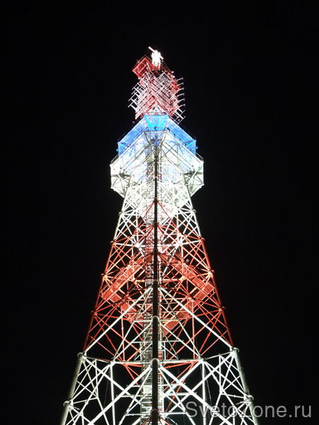 195-метровая телевизионная вышка находится на возвышенности и хорошо просматривается из различных районов города, поэтому было важно выделить конструкцию в вечернее время с помощью архитектурно-художественной подсветки.