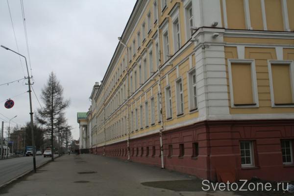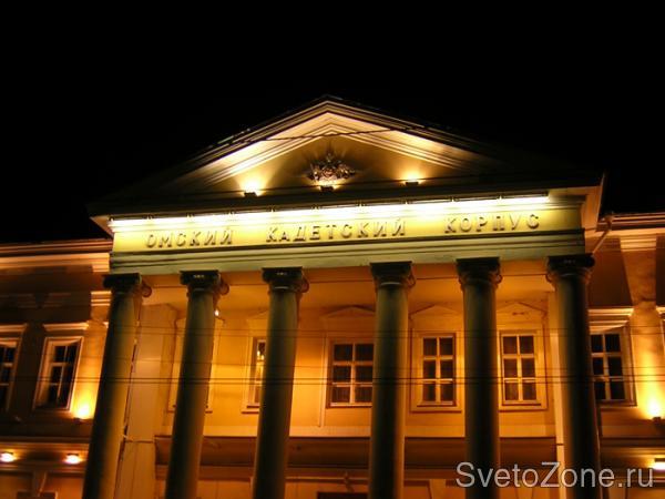 Здание корпуса находится на одной из старейших и красивейших улиц города Омска. Не так давно оно было отреставрировано и обновлено. Величавый достойный вид этого здания также достойно освещается прожекторными светильниками марки «Световые технологии»,серии UM150, модель UMA 150.