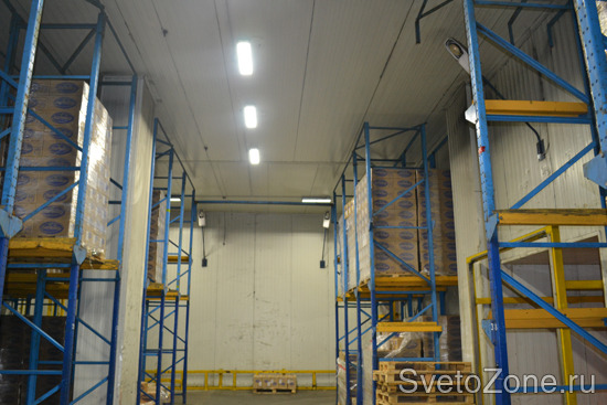 Был осуществлен проект модернизации освещения на складе одного из Московских холодильных терминалов. Традиционные потолочные источники света были заменены на светодиодные светильники. Эффективность применения подобных решений обусловлена значительной экономической выгодой – светодиодное освещение объекта позволит значительно сократить издержки, связанные с потреблением электроэнергии.