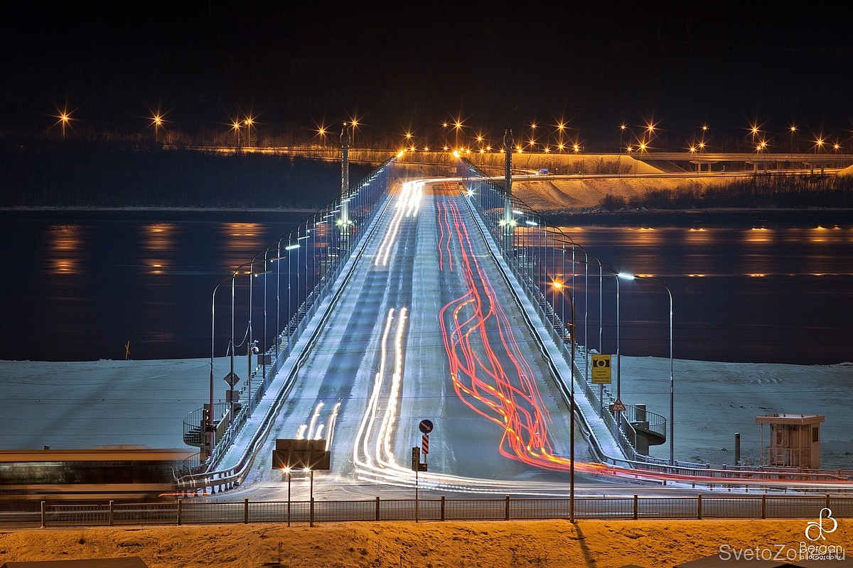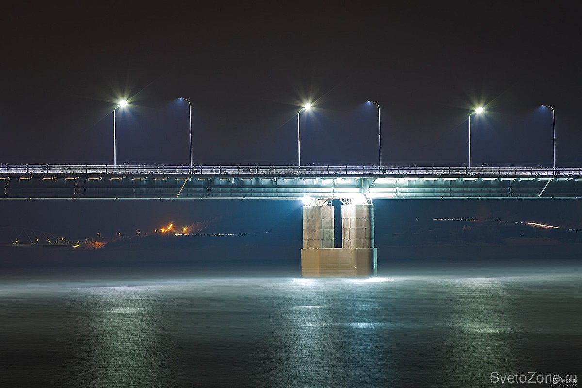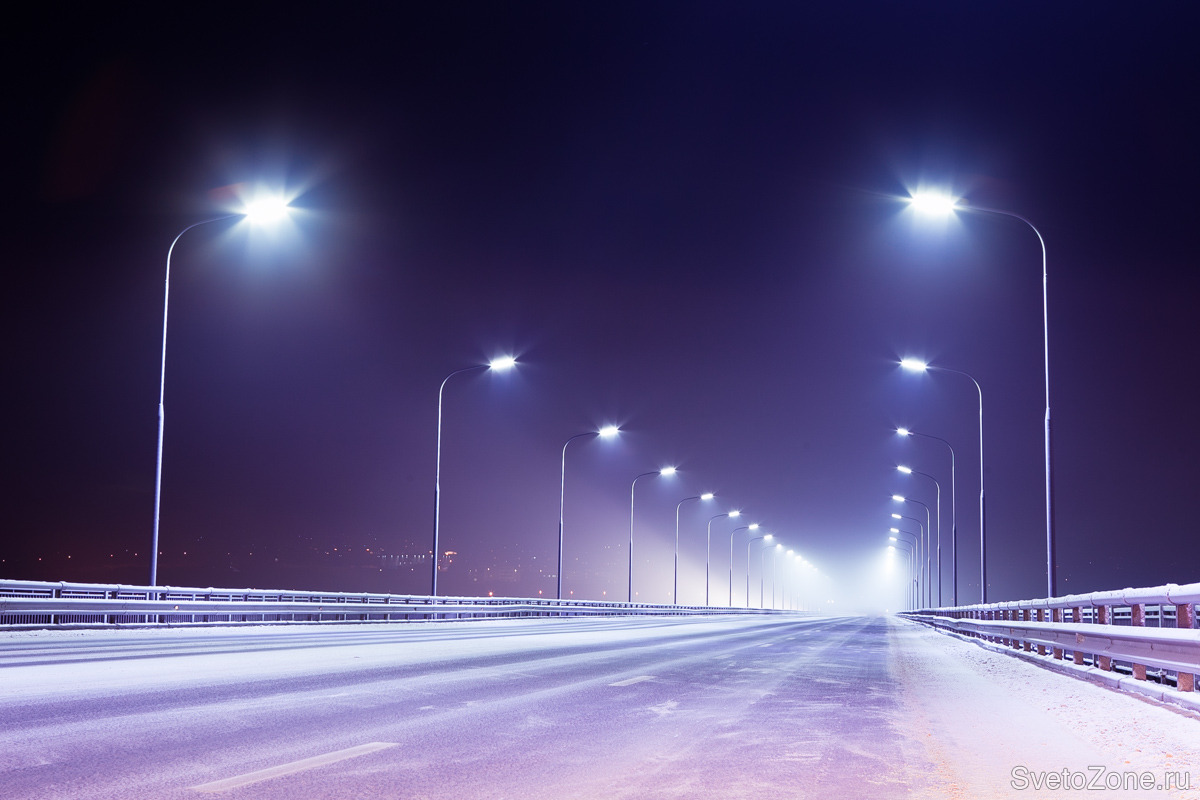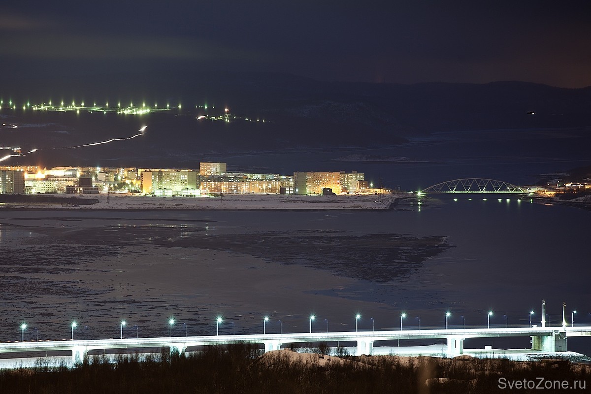 Проект, реализованный в 2011 году в Мурманске на мосту через Кольский залив, стал визитной карточкой города. Освещение было реализовано на первой серии светодиодных светильников УСС МАГИСТРАЛЬ со световой диаграммой типа «Л» (сейчас выпускаются с «Ш»). Устройства обладают высоким индексом надежности и обеспечивают безопасность движения в сумеречное и ночное время. Светодиоды разработаны японской компанией Nichia эксклюзивно для продукции завода ФОКУС. Такие светильники можно использовать на автомагистралях типа «А» (это дороги с самой высокой пропускной способностью). Светодиоды нового поколения также обладают оптимальной световой температурой в 4800 К и лучшей энергоэффективностью на рынке в соотношении люмен на ватт. |