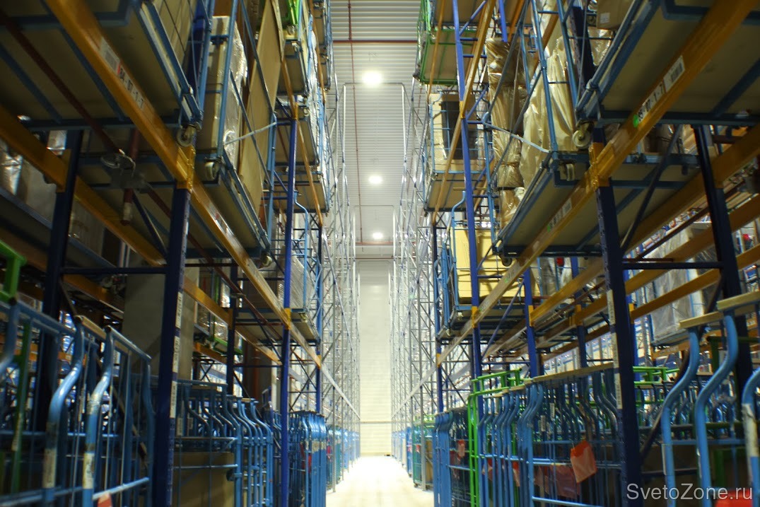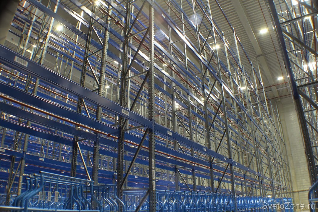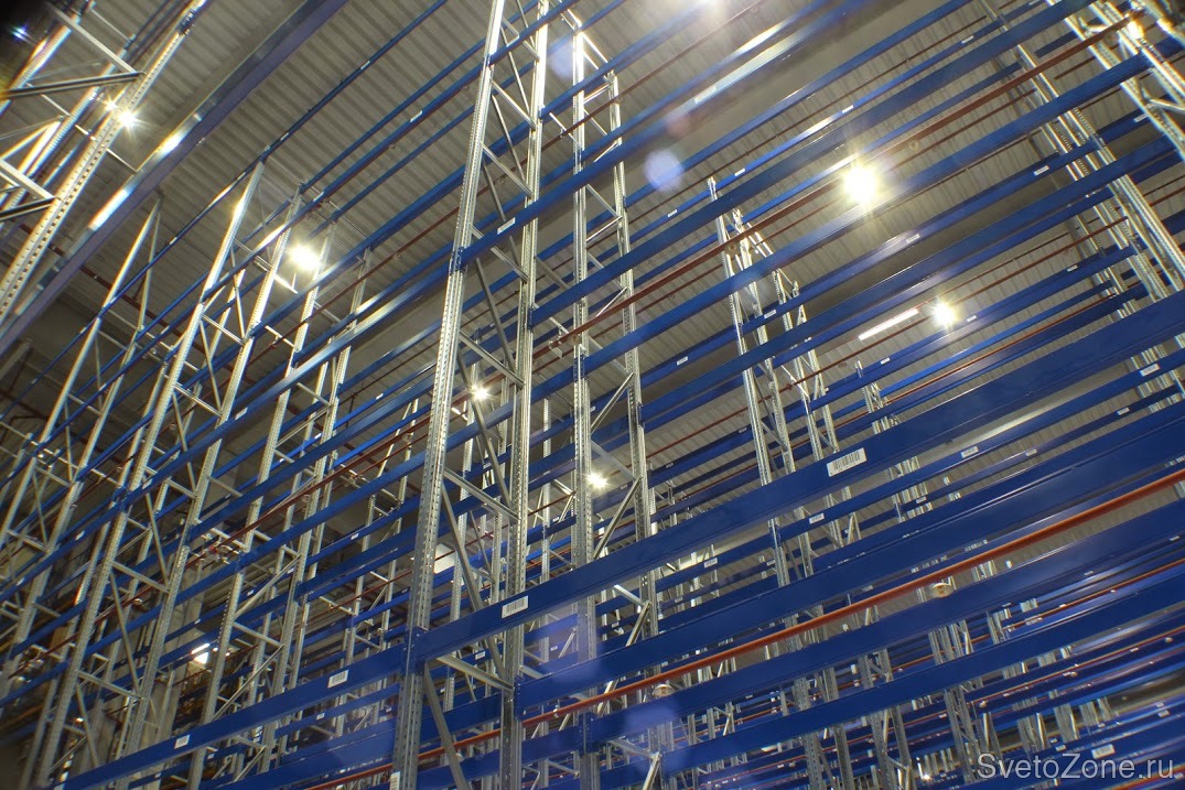 Требования выполнены полностью. Освещенность в среднем составляет 170 люкс. Проходы между стеллажами освещены равномерно. Водителей погрузчиков новое освещение не слепит, даже если они находятся в непосредственной близости от светильника. Экономия по сравнению с ранее установленным оборудованием на складе: