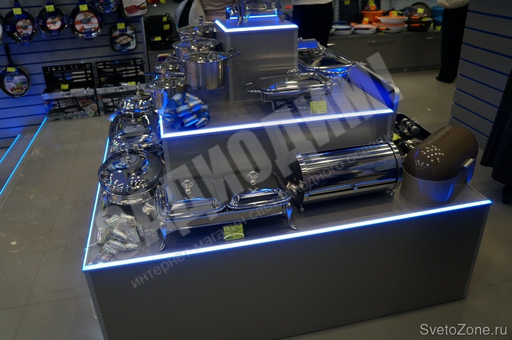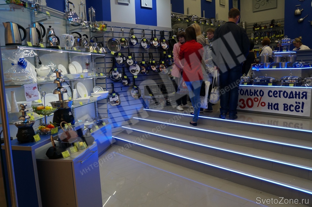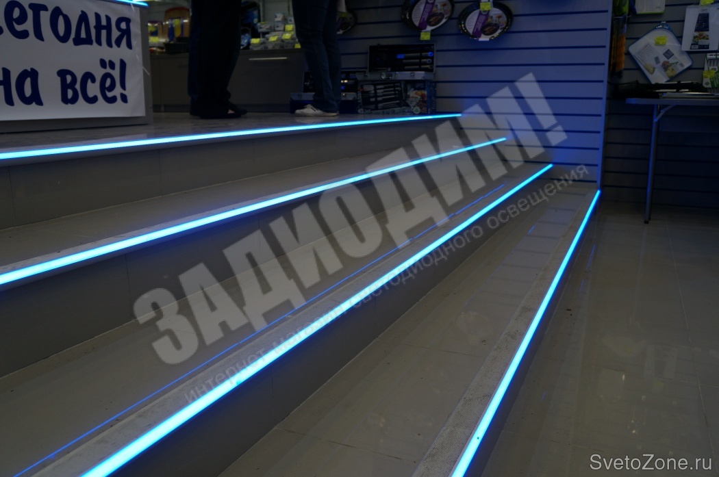 Компаний Задиодим был выполнен проект по подсветке салона-магазина Gipfel. В проекте использовалось следующее оборудование: Профиль MIC-2000 ANOD, Светодиодная лента RT-5000 12V 2x 3528, Профиль с экраном ALU-STAIR-2000 ANOD+FROST. |