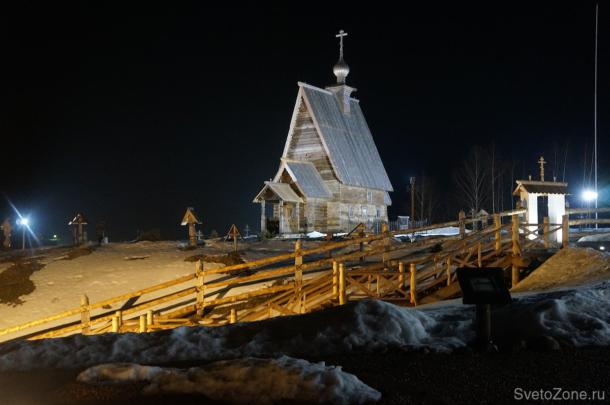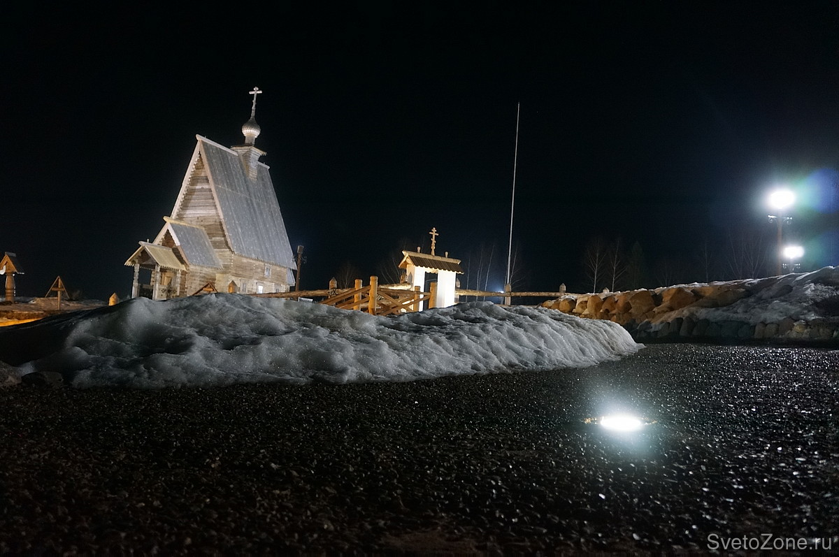 В проекте использовались: грунтовые светодиодные светильники для подсветки памятников, подсветка церкви выполнена светодиодными прожекторами, подсветка улиц выполнялась с использованием светодиодных ламп. |