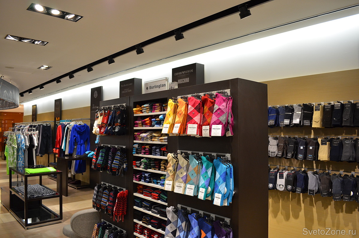Для закарнизного освещения использовались витринные светильники LL-ДПО-01-011, которые также являются самостоятельной разработкой компании "РЭСТО".