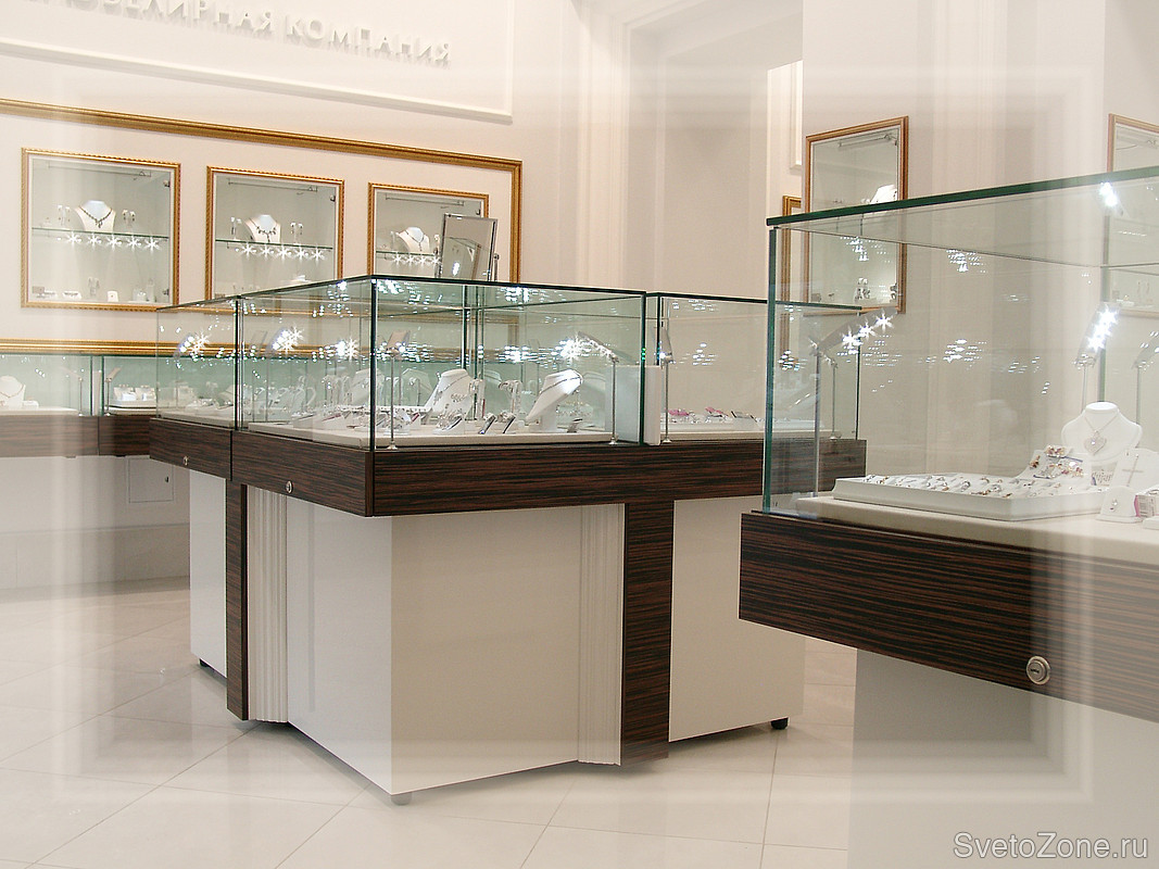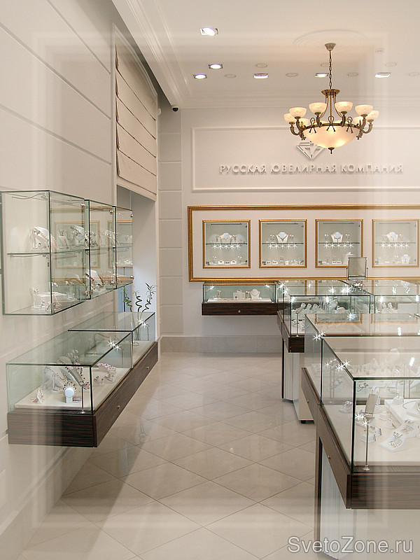 Известная российская ювелирная сеть обратилась в конце 2008 года за помощью к специалистам компании. Перед специалистами стояла задача осветить два зала магазина с ювелирной продукцией.