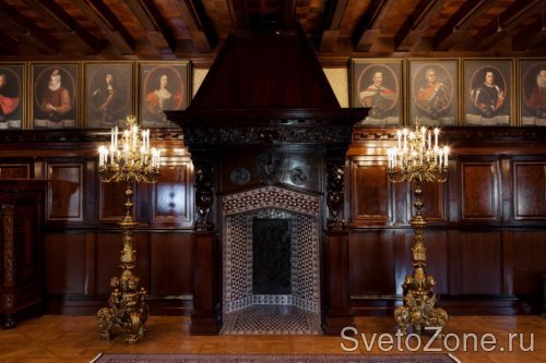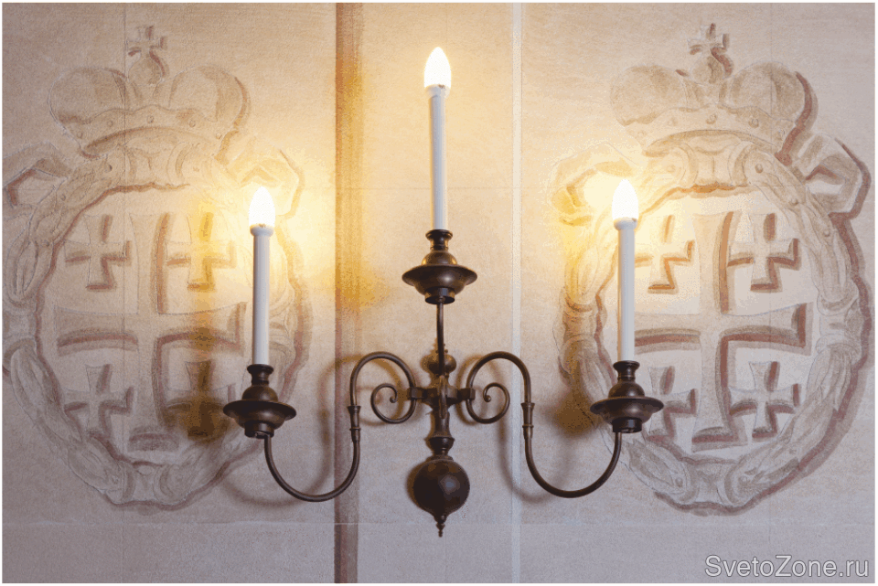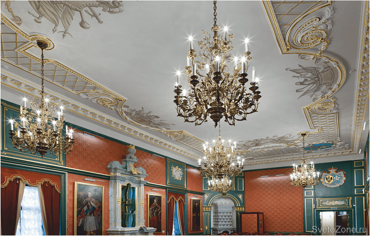 Всего в стенах замка насчитываеться более 700 светильников, отдельные представлены в единственном экземпляре. В большинстве светильников преобладают характерные мотивы раннего и позднего барокко.