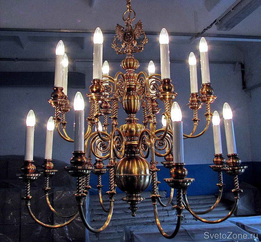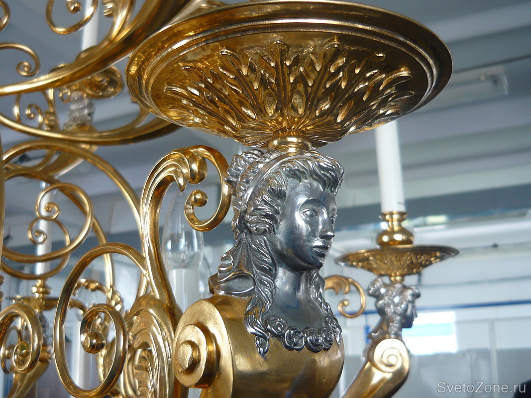 Использованы технологии золочения, гутного стеклоделия, худлжественного литья. |